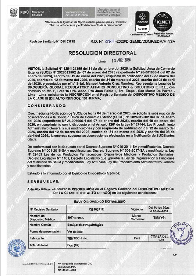 Received COFEPRIS Certification(Mexico) for 10THERMA