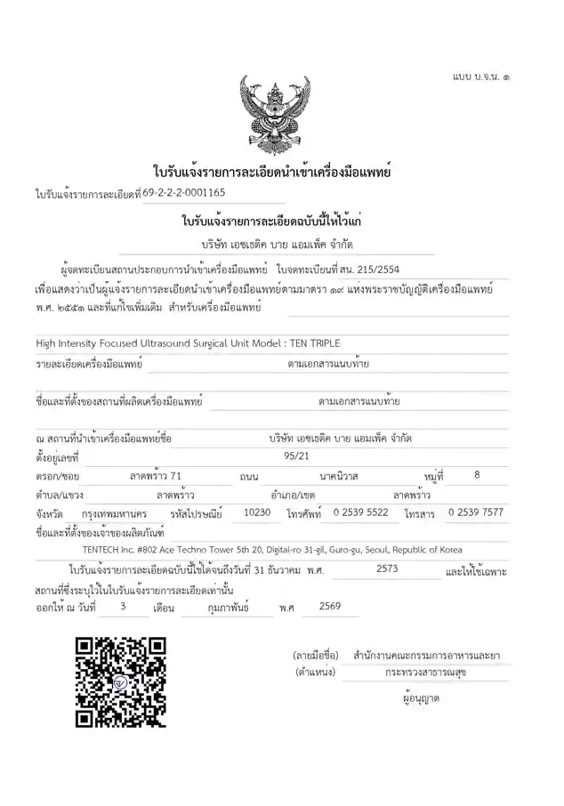 Acquired FDA Certificate (Thailand) for 10THERMA&10THERA